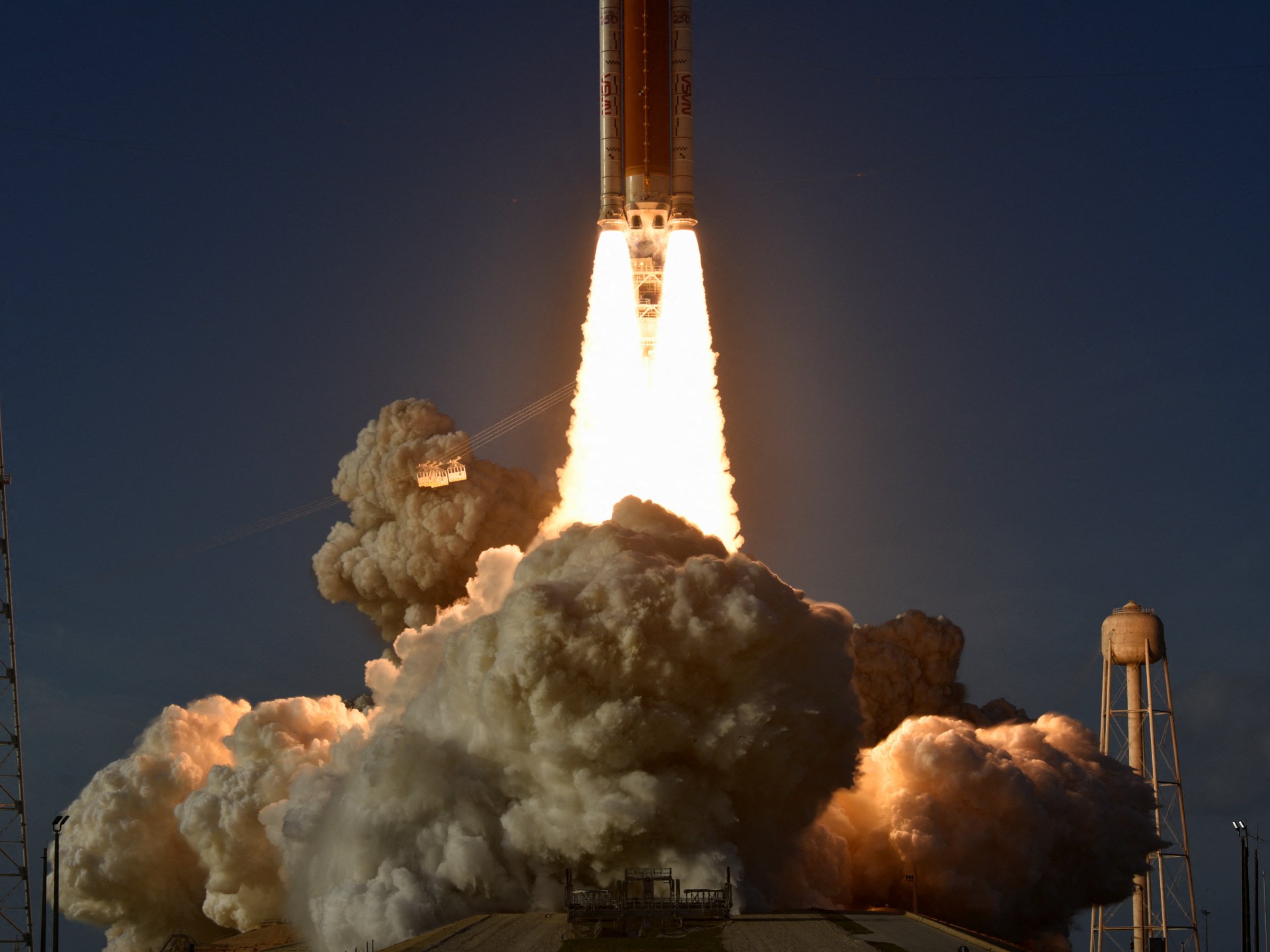 The 322-foot Space Launch System (SLS) rocket lifted off at 6:35pm ET (22:35 GMT) on Wednesday from Cape Canaveral, Florida, sending the Orion crew capsule on a 10-day journey.